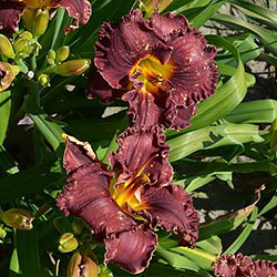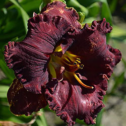 Добре гофрований темно-червоний з синім відтінком, жовте горло.