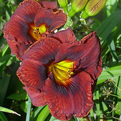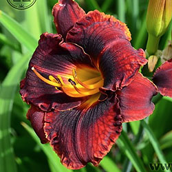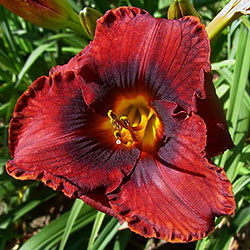 Унікальний махогонієво червоний з майже чорною плямою навколо зеленого горлечка.