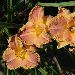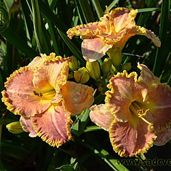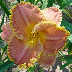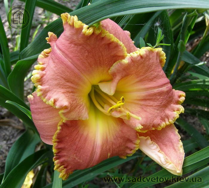 Чудовий лілово-рожевий з золотистим оком і таким же гофрованим краєм. Розкішний.