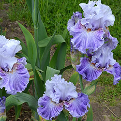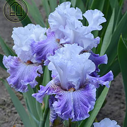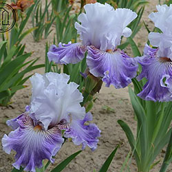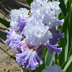 Прекрасно гофрована квітка. Ст. - льодово-білі зі слабким лавандовим рум'янцем в середніх жилках. Ф. - по дуже світлій пурпурно-блакитній основі рясний водоспад світло-фіолетових прожилок що не доступать до краю і створюють облямівку 1/5", пурпурно-червоний в плечах і льодово-білий по боках від мандаринової б.
