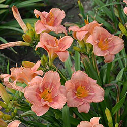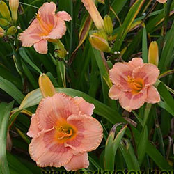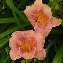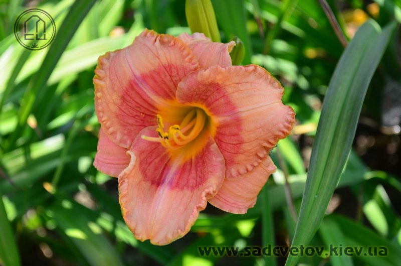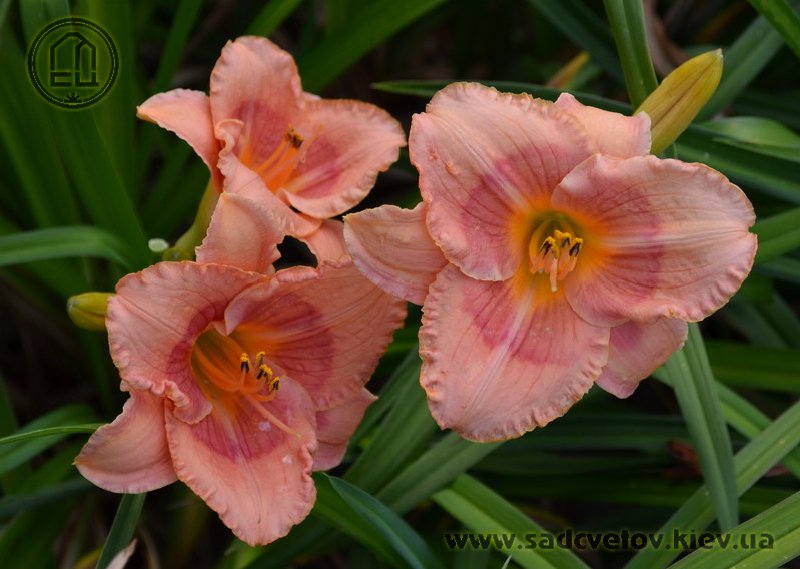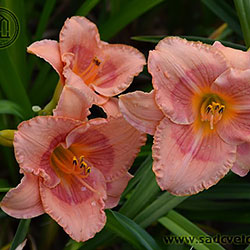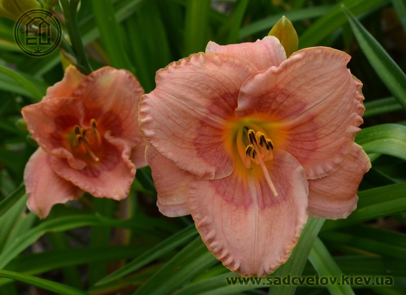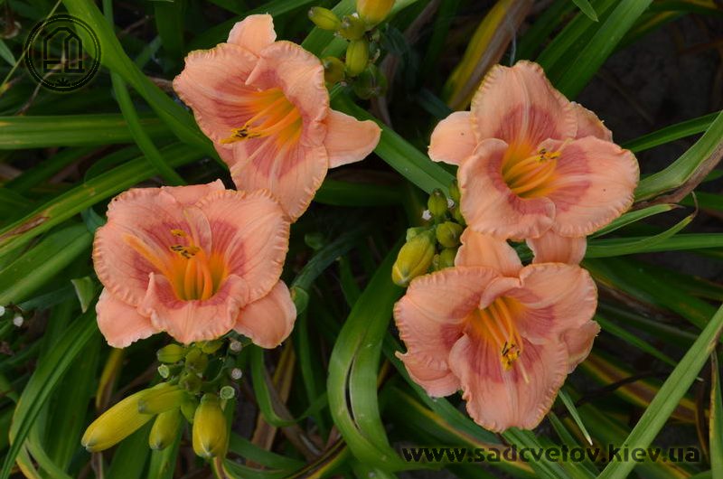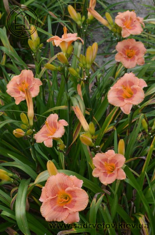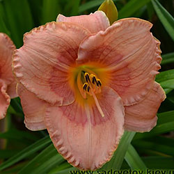 Абрикосовий з великим рожевим оком окресленим малиновою облямівкою. Гофрований з жовтою серединкою і таким же кантом по товщинці пелюстки.