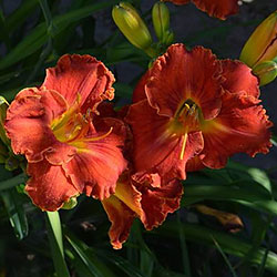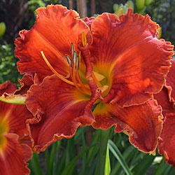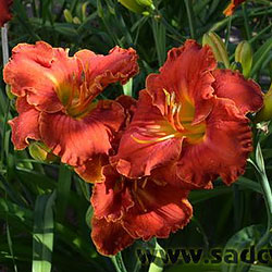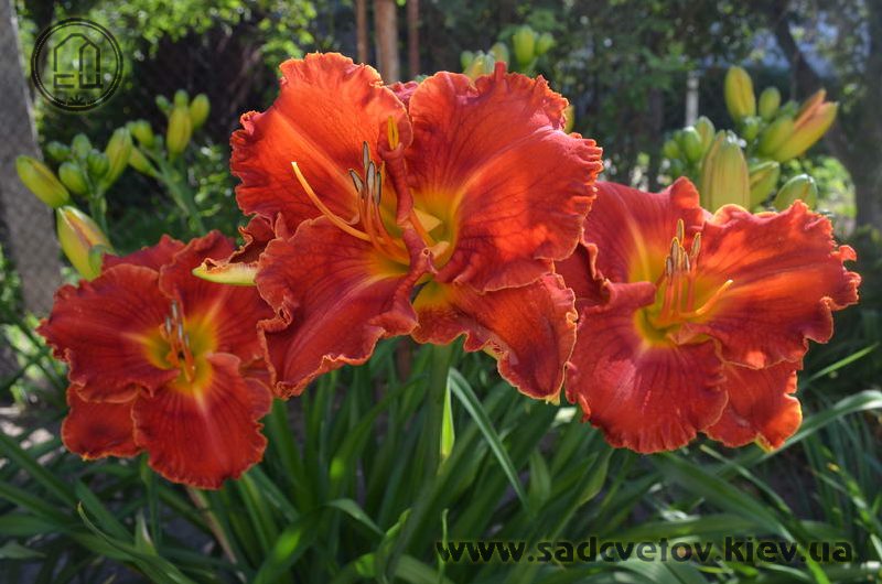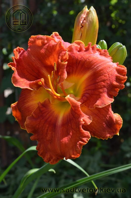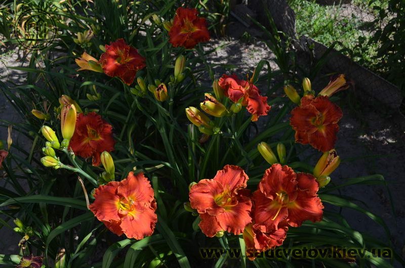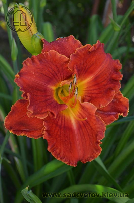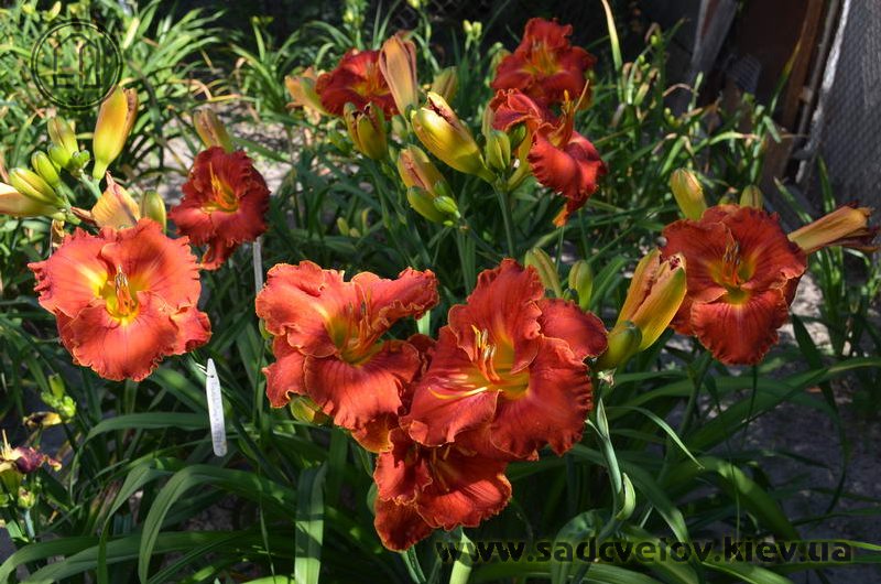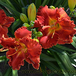 Вогненний кумачовий червоний з більш насиченим в кольорі оком і жовто-зеленим горлом, тонка світла окантовка по краю.