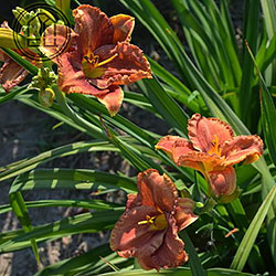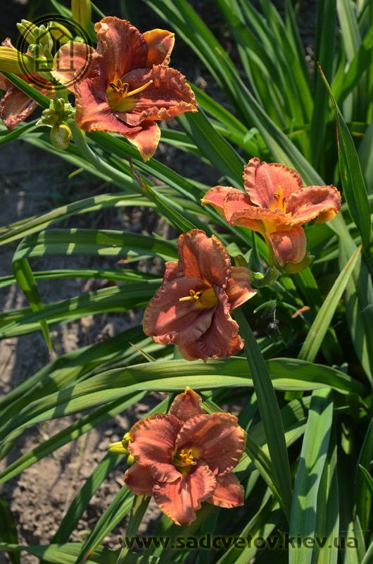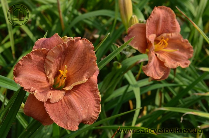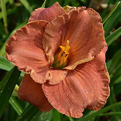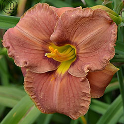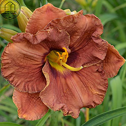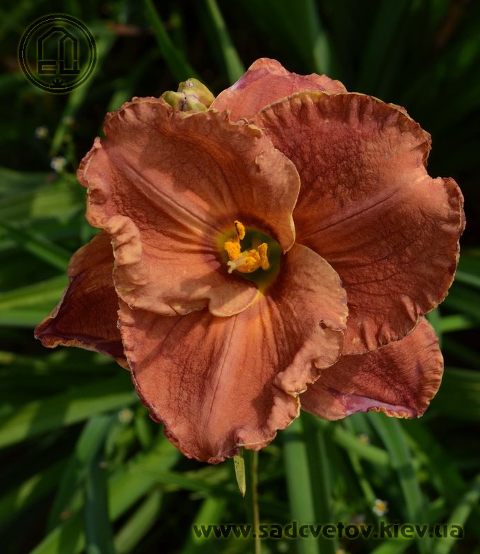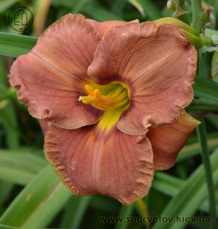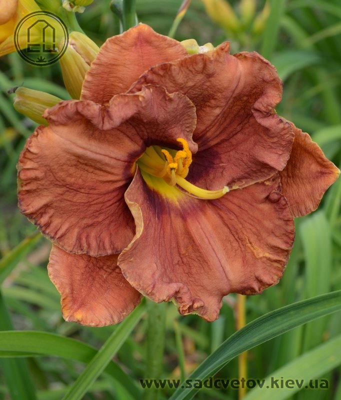 Теракотовий червоно-коричневий круглий з маленьким темно-коричневим очком навколо жовто-лимонного горла.