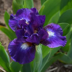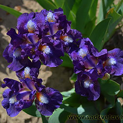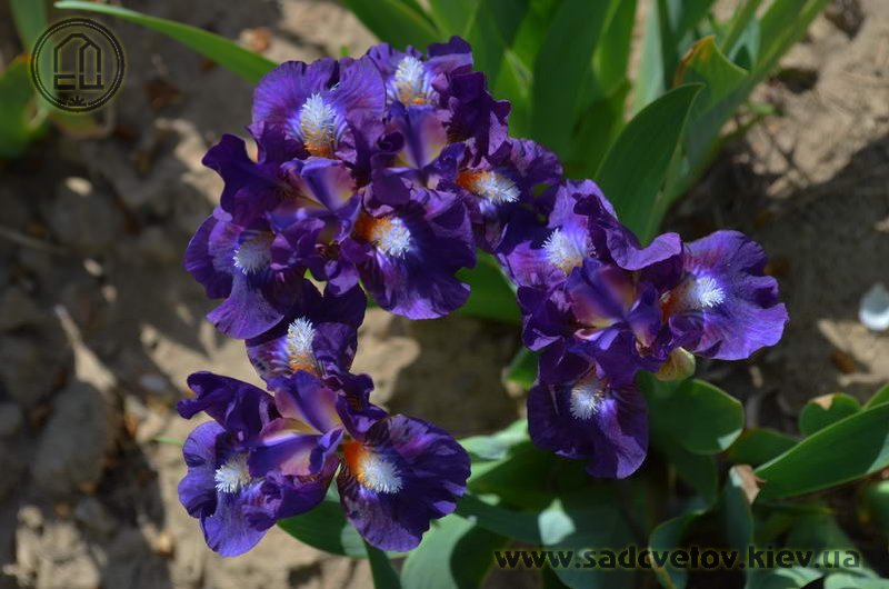 Яскраві білі з оранжевої горловиною б. на темному насиченому фіолетовому тлі. На ф. від плечей з боків від б. плями темно-пурпурного кольору, невелике висвітлення навколо б.