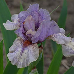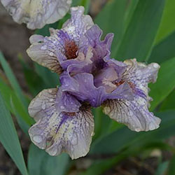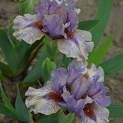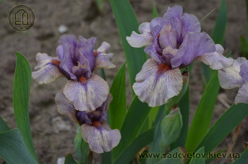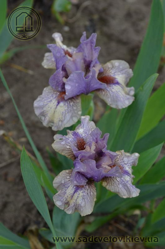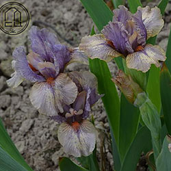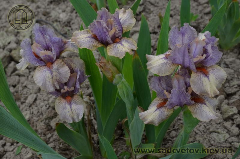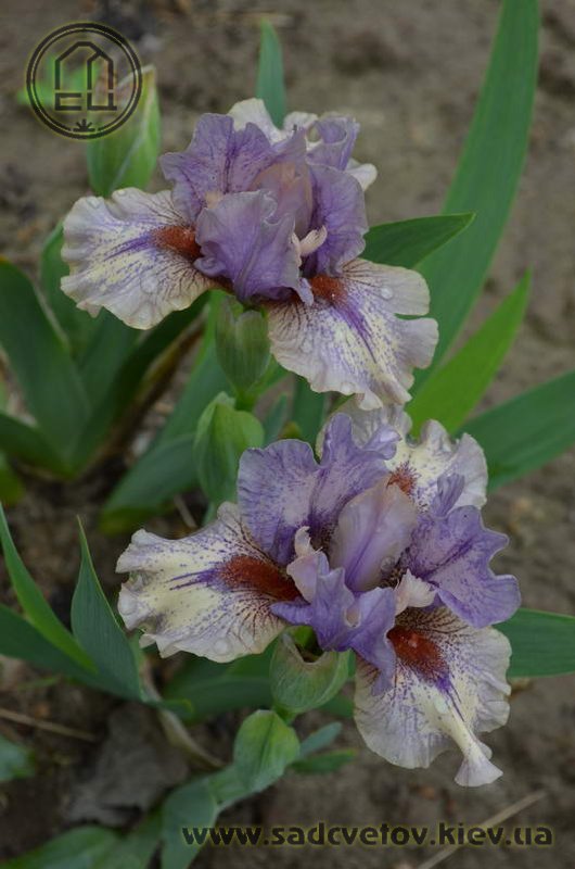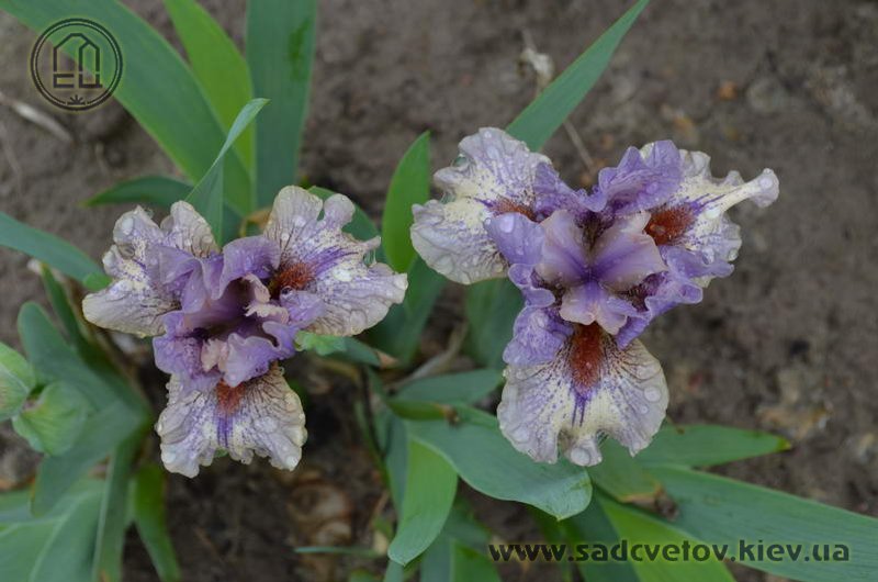 Гофрована пліката. Ст. - світло-фіолетові з лавандовими прожилками, серединка світло-рожева з лавандовими включеннями, ф. - сніжно-сірий візерунок плікати по світлій кремово-жовтій основі, лавандовий мазок під б. і бордові прожилки в плечах, б. - темні мандаринові кінчики з коричнево-фіолетовою основою.