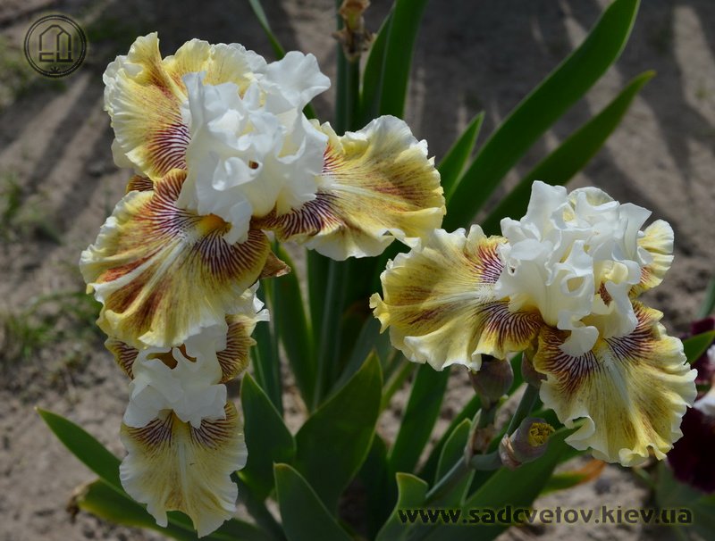 Кремово білі ст., Лимонно-жовті ф. з великим коричнево-бордовим променистим узором навколо лимонно жовтих б ..
