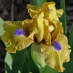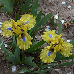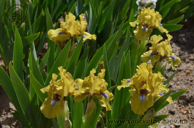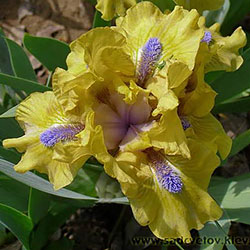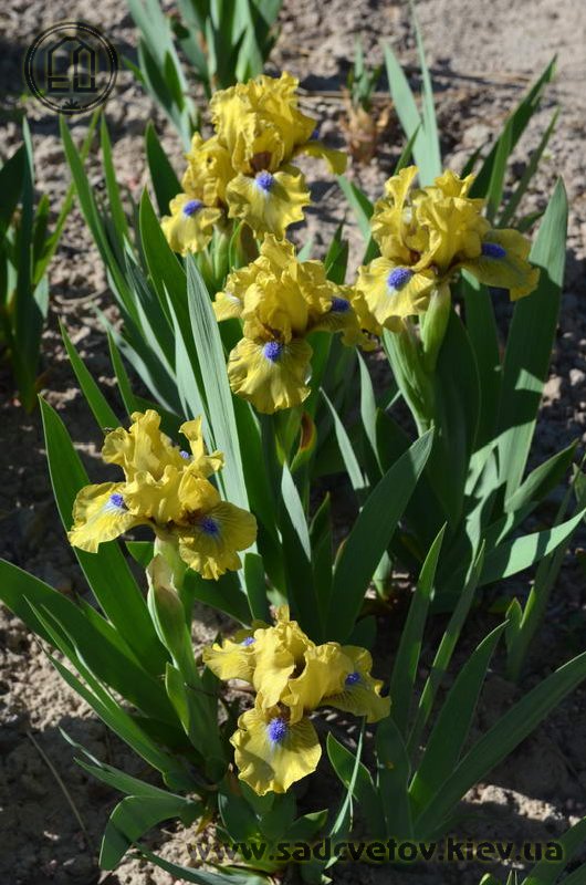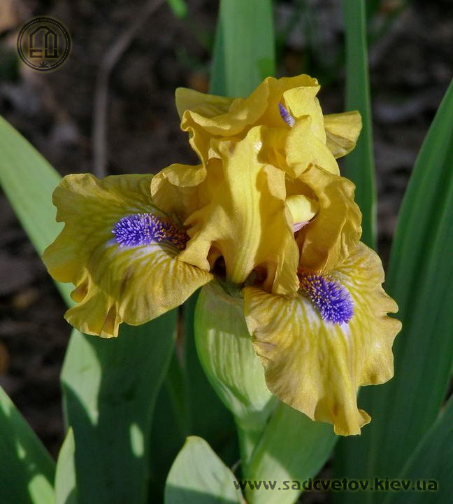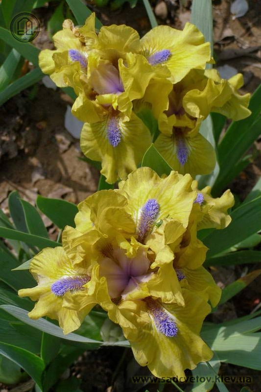 Назву отримав за яскраві волошкові б., що контрастують на світло-жовто-оливковому тлі в поєднанні з золотистим малюнком. Гофрований.