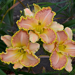 Двотонний рожевий з мереживним золотистим краєм і масляним горлом.