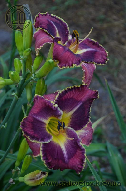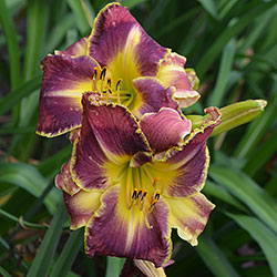 Великий гофрований коралово-червоний з великим вишневим оком розсіченим яскравим білим променем із жовто-лимонного горла та подвійною облямівкою кольорів ока та горла.