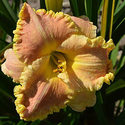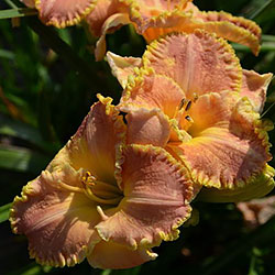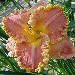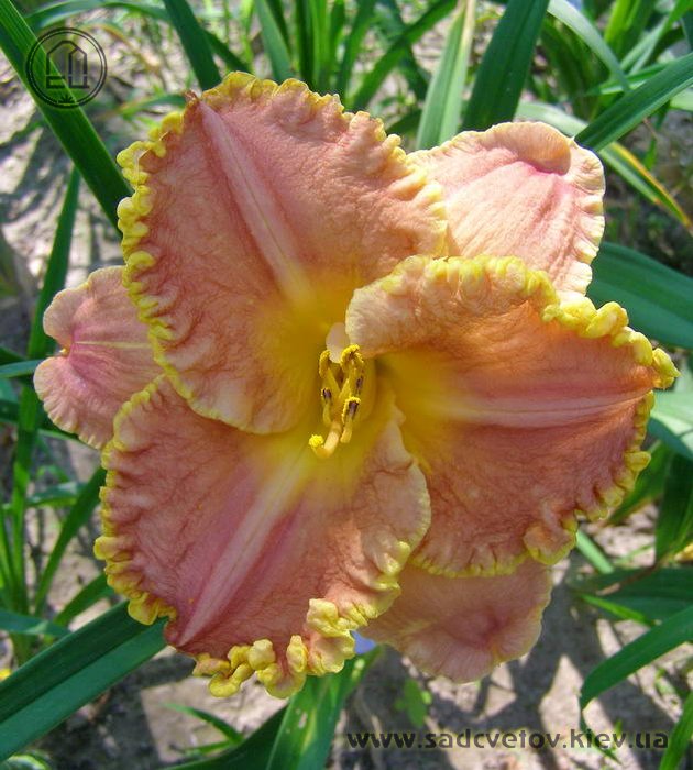 Чудовий лілово-рожевий з золотистим оком і таким же гофрованим краєм. Розкішний.