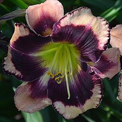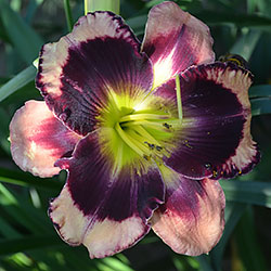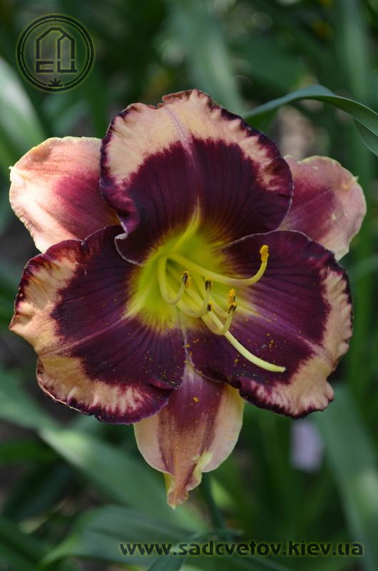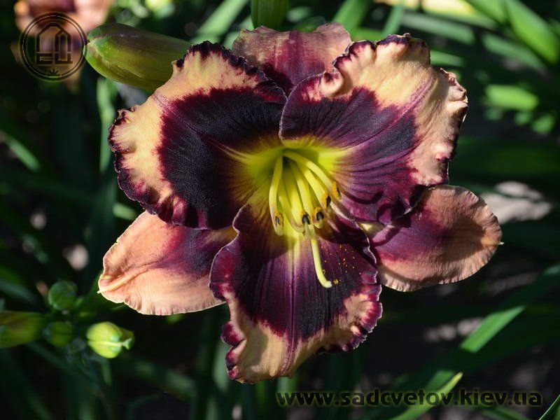 Оранжево-персиковий з дуже великим вишневим оком і такою ж облямівкою, гірчичним з лимонно-зеленим горлом.