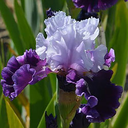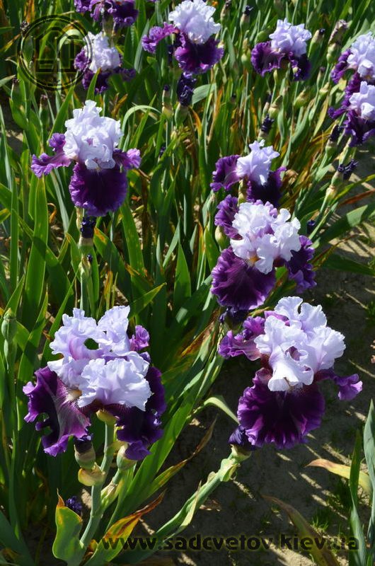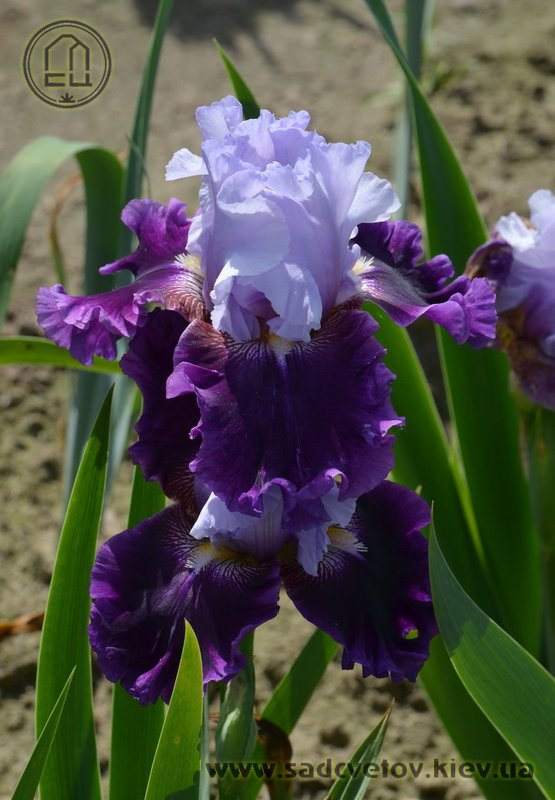 Дуже велика гофрована квітка. Білі льодові ст .. Ф. - горизонтальні темно-фіолетові з висвітленням в облямівку по гофрованому краю, бордові плечі, льодово-помаранчеві б.