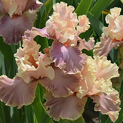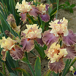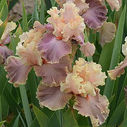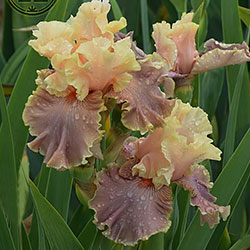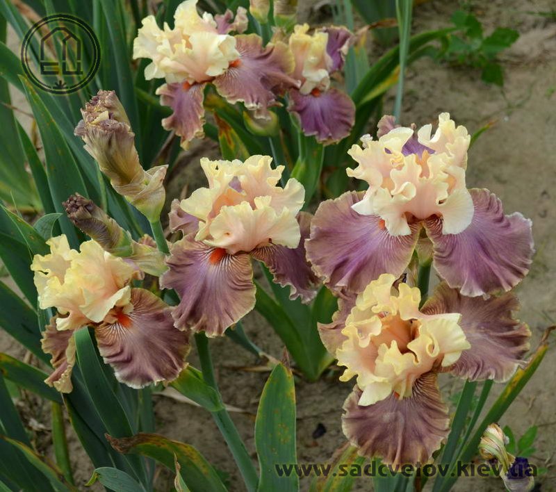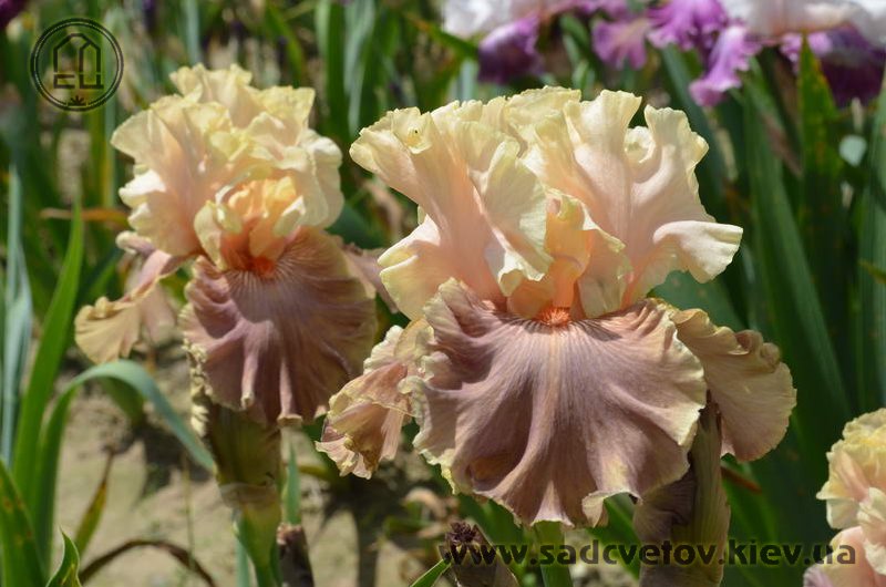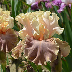 Прекрасно гофрована однотонна квітка. Персикові ст. - Світлий жовтувато-рожевий рум'янець по зеленувато-жовтій основі. Молочно-кавові ф. з легким лавандовим відтінком та персиковим у плечах, з тонкою облямівкою кольору ст. , яскраві оранжеві б.