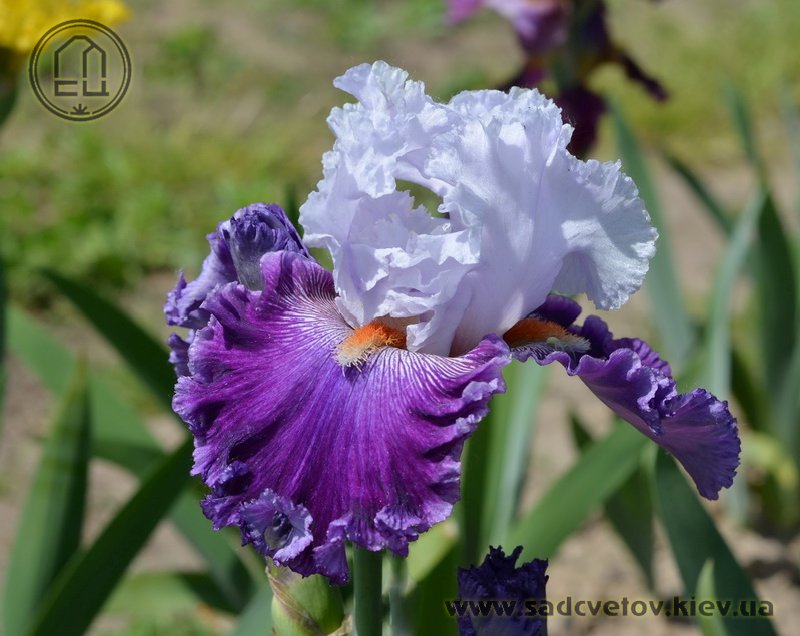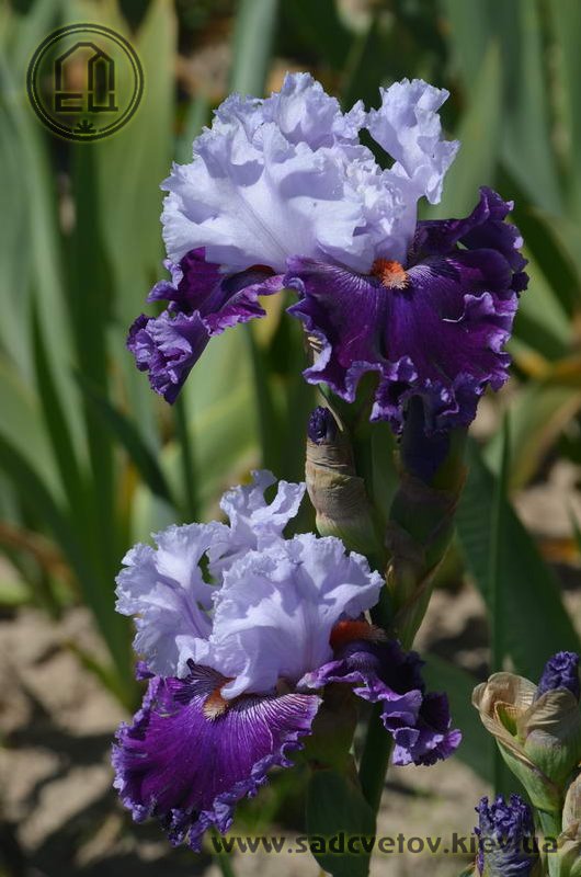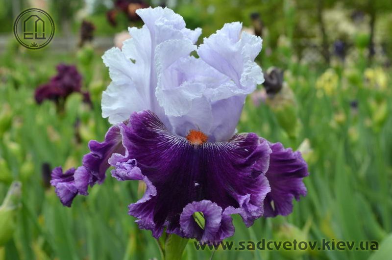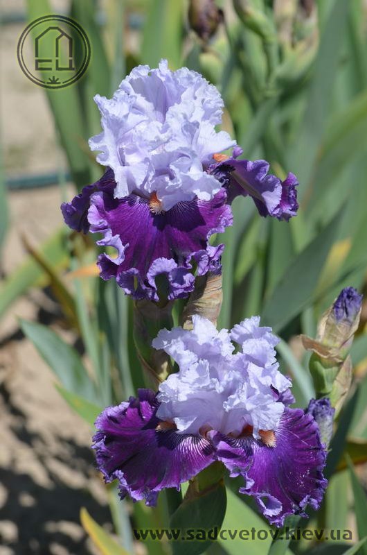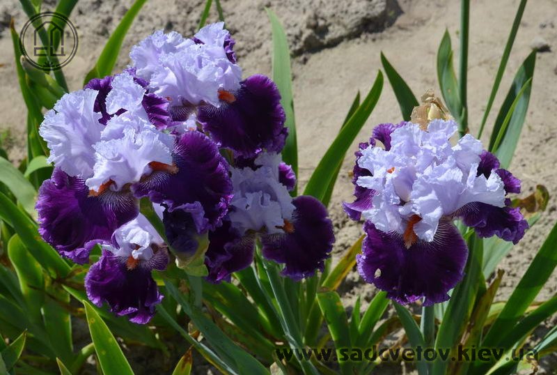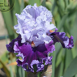Супергофрірованний з мереживними краями. Ст. - льодово-білі з легким лавандовим рум'янцем. Ф. - темно-фіолетові з 1/8 "лавандово-фіолетовою облямівкою, візерунок білих прожилок з боків від мандаринових з білим кінчиком б.