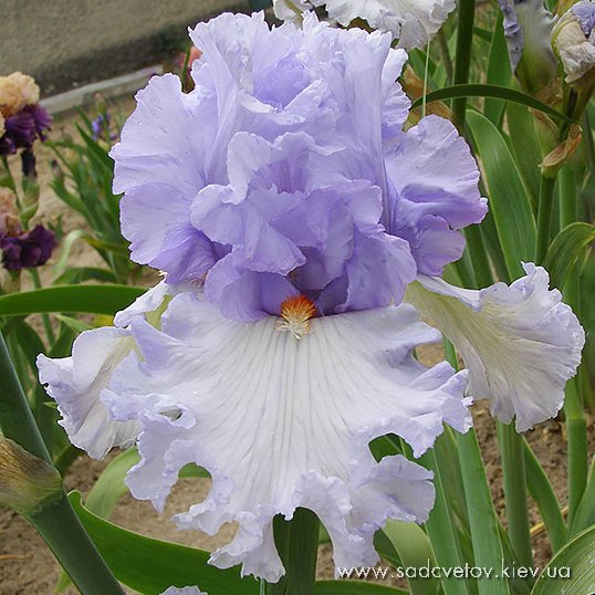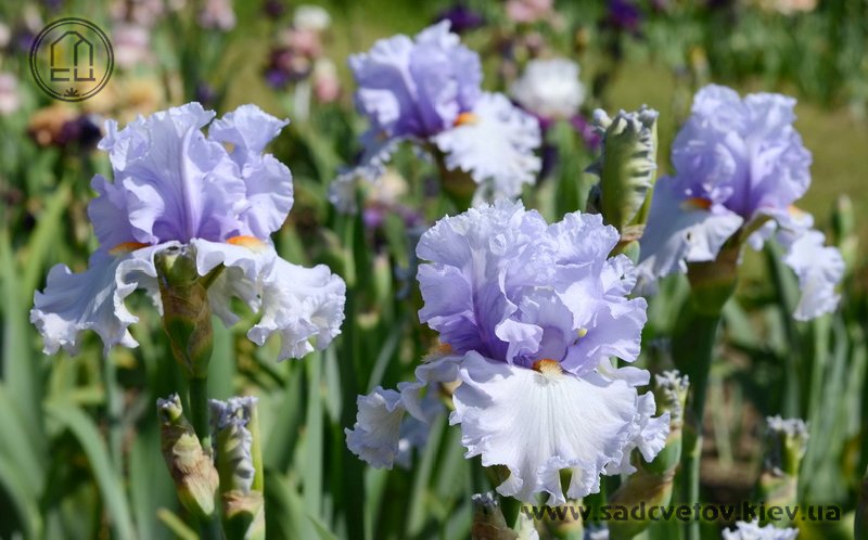 Супергофрований ніжний реверс. Рясноквітучий. Ультрамаринові ст. і перлинно-сріблясто-блакитні ф .. Світлі з яскраво-помаранчевими кінчиками б ..