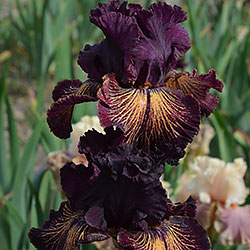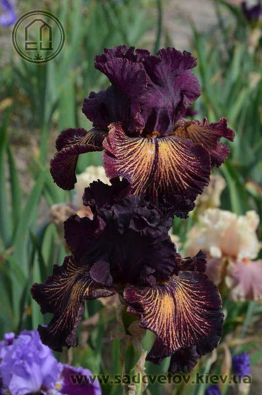 Гофрована мереживна квітка. Чорно-фіолетові ст., На бежево персикових ф. - візерунок чорно фіолетової плікати.
