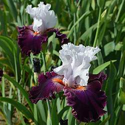 Прекрасна форма. Ст. - білосніжно білі з легким золотавим рум'янцем від основи, ф. - вишневі з тонким блідим лавандовим кантом. Біля мандаринових борід радіальний білий візерунок і слабкий фіолетовий сигнал