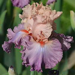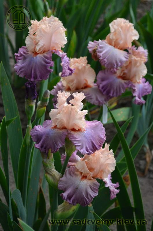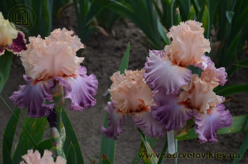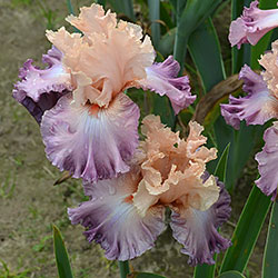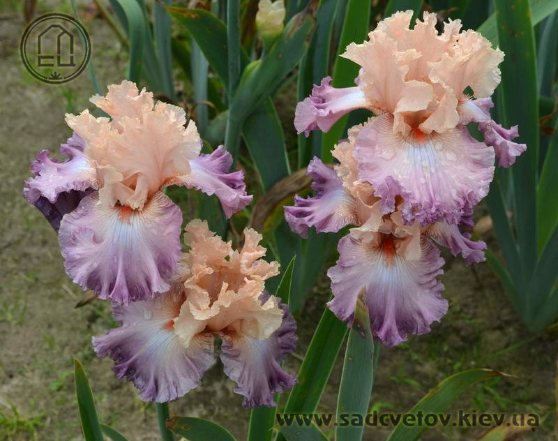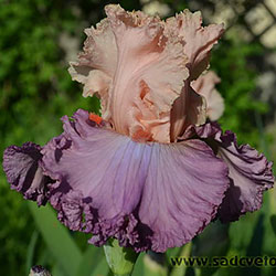 Мереживна, добре гофрована квітка. Ст. - персиково-рожеві, серединка з лавандовими включеннями, ф.- лавандові, більш насичені до низу, рожевий відлив з боків від лососєвої бороди з більш розмитим рожевим кінчиком.