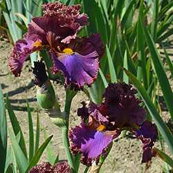Прекрасно гофрована мереживна квітка. Помірні пурпурно-червоні ст. з висвітленням по боках, яскраві пурпурні ф. з жовтувато-рожевим в мереживах по краю, з вогником світлого фіолетового під помірно-жовтою б., смугастим візерунком з боків від неї.
