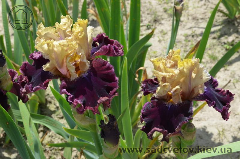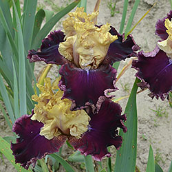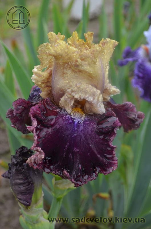Гофрована квітка. Ст. - кольори блідого золота з лавандовим вливанням в середніх жилках і мереживами на кінцях, ф. - темні пурпурно-вишневі з тонким помірно-рожевим гофрованим кантом. Маленький синій вогник під двобарвними від синього до темно-абрикосового борідками.