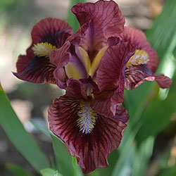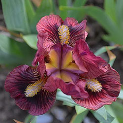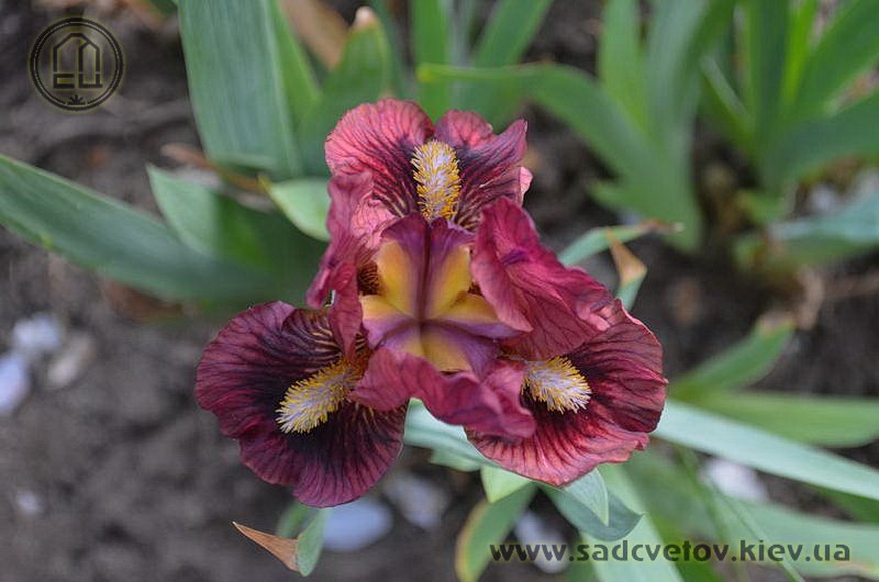 Ст. - темні пурпурно-рожеві з вираженим розгалуженим віялом темних лавандових прожилок по всьому фону, гілки маточки поздовжньо по середині світло-пурпурові і помірно жовті з боків, ф. - основа кольору стандартів з візерунком добре розгалужених темних червоних прожилок утворює темну пляму навколо світло-блакитних з яскравими жовтими кінчиками б., Жовті прожилки в плечах.