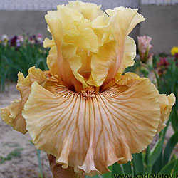 Велика, гофрована і розкішна кавово - медова квітка, ф. темніші з темними кавово коричневими прожилками, що розходяться по всьому тлу., бронзові б.