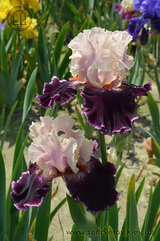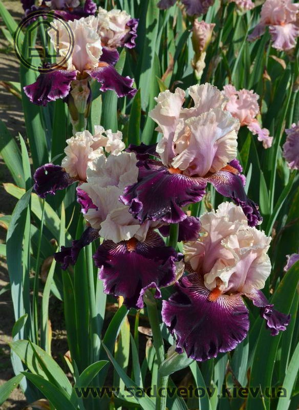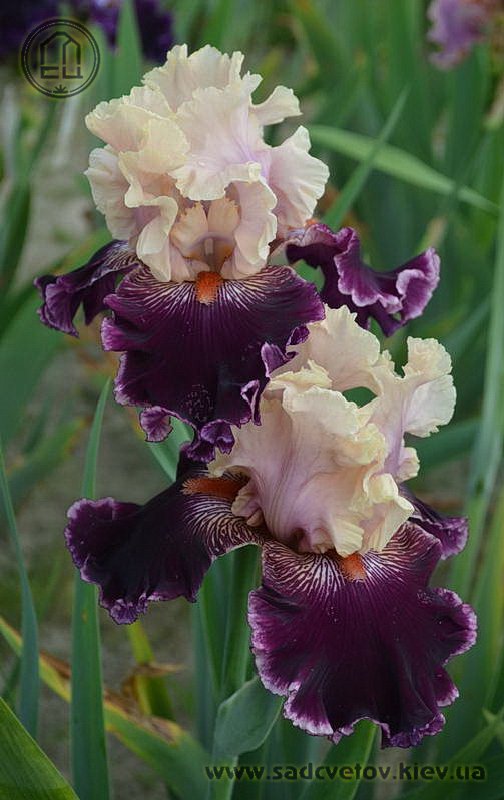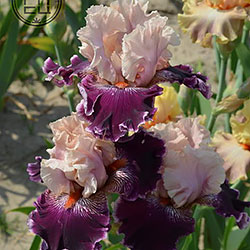 Гофрована двотонна квітка. Ст. - блідий світло-пурпурний з легким лавандовим рум'янцем в середніх жилках і золотистим відтінком по краях, ф. - глибокий пурпурний з тонкою лавандовою облямівкою і світлим смугастим візерунком прожилок з боків від приглушених червоно-помаранчевих б.