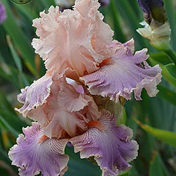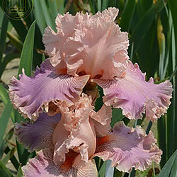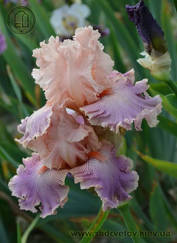 Добре гофрована мереживна квітка. Ст. блідо-рожеві з абрикосово-золотистими середніми жилками, ф. - світло-пурпурний малюнок прожилок з висвітленням на краях до рожевого, теракотові плечі і білий радіальний візерунок навколо яскравих лососєвих б.