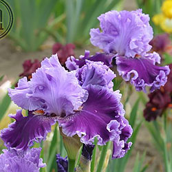Величезні дивовижні важко-гофровані мереживні квіти на високих квітконосах. Ст. - орхідейні-бузкові, ф. - червоно-лавандові з орхідейно-бузковою облямівкою і яскраво-мандариновими б.