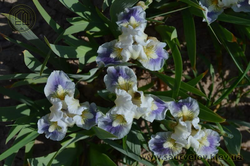 Ст. - білі з зелено-жовтим рум'янцем в середніх жилках, ф. - сніжно-білі з вираженим візерунком золотисто-гірчичного і світлих пурпурно-синіх прожилок зливаються в пляму під яскраво білою з жовтою горловиною б.