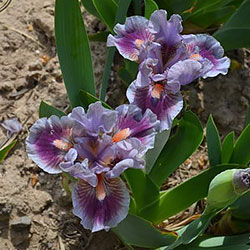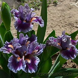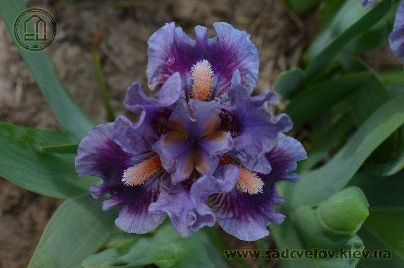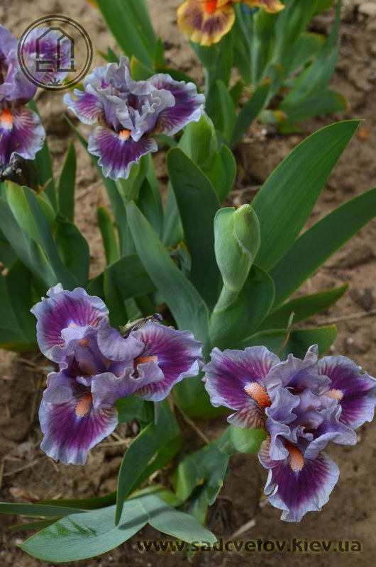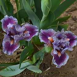 Гофрована квітка. Ст. - світлий фіолетовий з темним лавандовим рум'янцем в середніх жилках, серединка - лавандова як стандарти з гірчичними включеннями, ф. - чистий червонувато-пурпурний з 1/5" облямівкою кольору стандартів, з боків борідки світлий візерунок прожилок кольору стандартів, б. - з кінчиками чистого оранжевого по світло-блакитний основі.