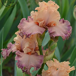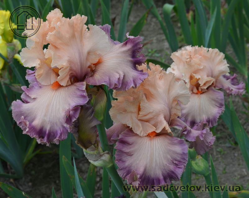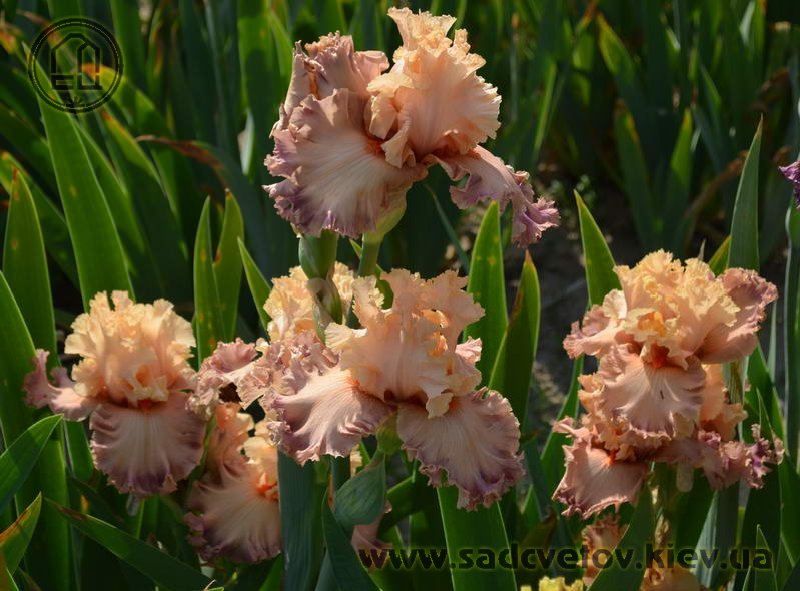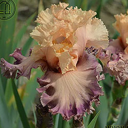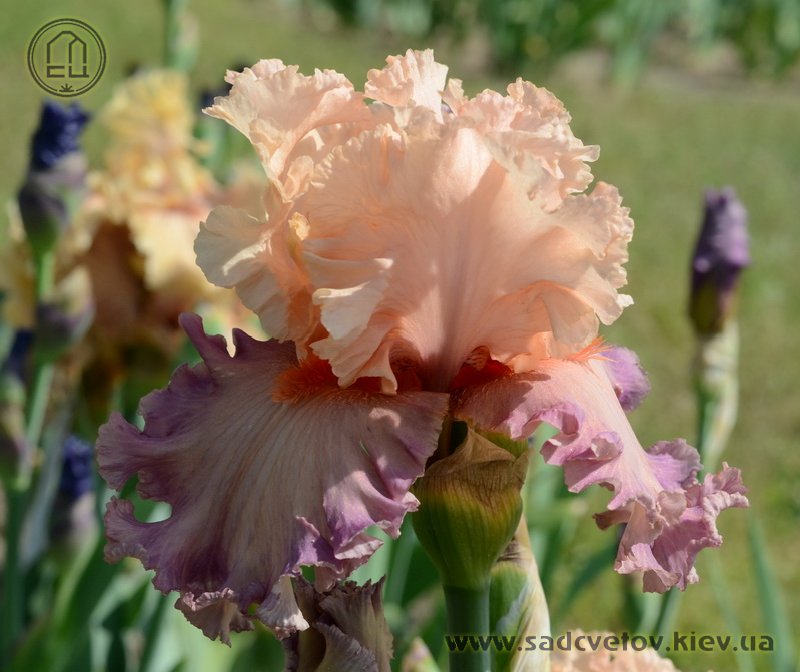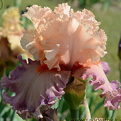 Унікальний мереживний супергофрований бежево абрикосовий, з рожево фіолетовою облямівкою на фоли і оранжевої борідкою.