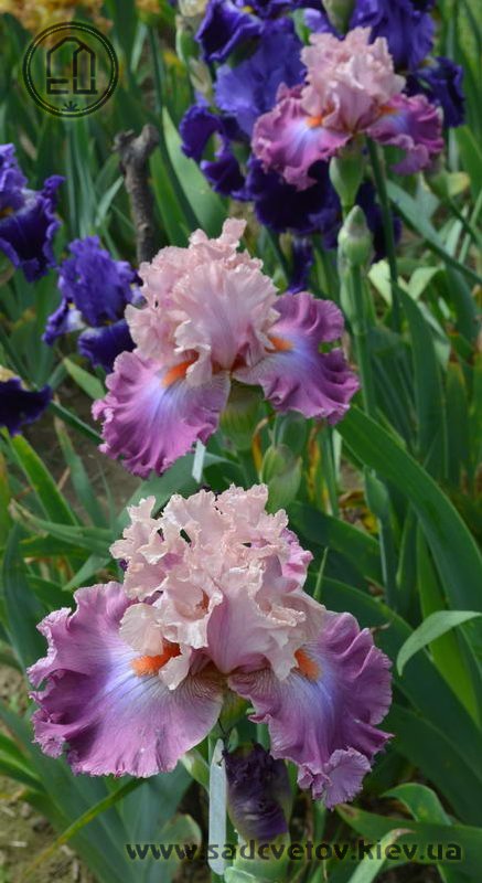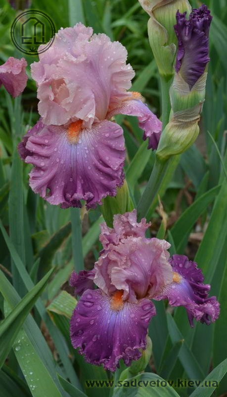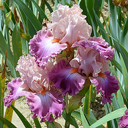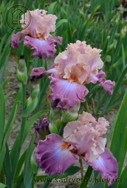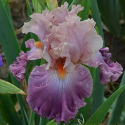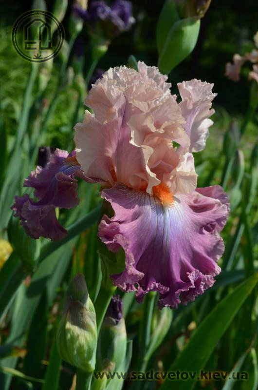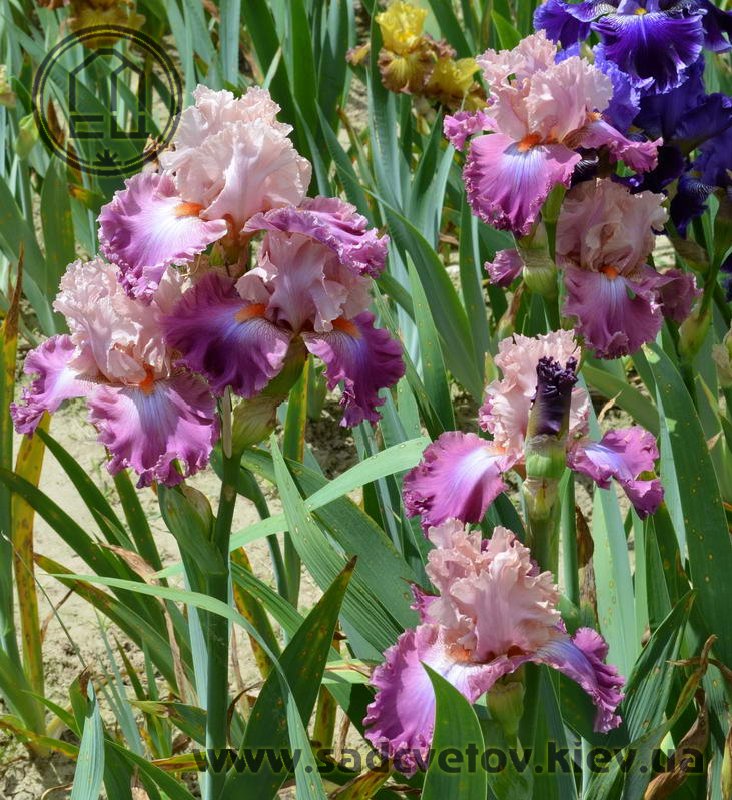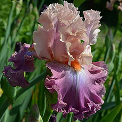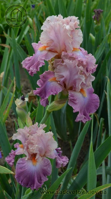Добре гофрована мереживна квітка. Ст. - блідий жовтувато-рожевий з лавандовим рум'янцем, ф. - темний пурпурово-рожевий з дуже блідим пурпуровим світлом під бородою, б. - яскравий жовтувато-рожевий.