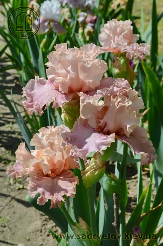 Дуже гофрована мереживна квітка. Ст. - блідий оранжево-жовтий з блідим жовтим мереживним краєм, світла жовтувато-рожева серединка, ф. - кольору стандартів в основі з віялом дуже блідих пурпурних прожилок по всій поверхні фол, які зливаються в дуже блідий пурпурний і гофрований край, б. - чистий оранжевий.