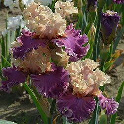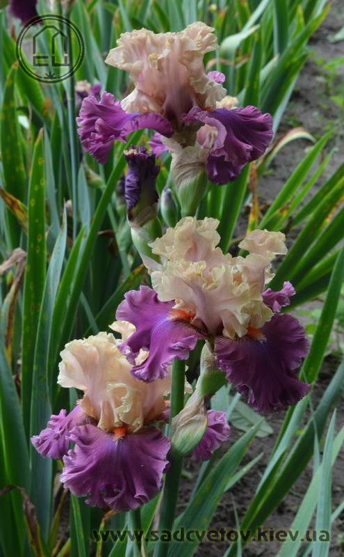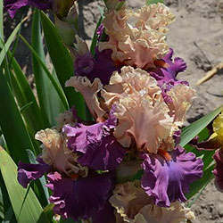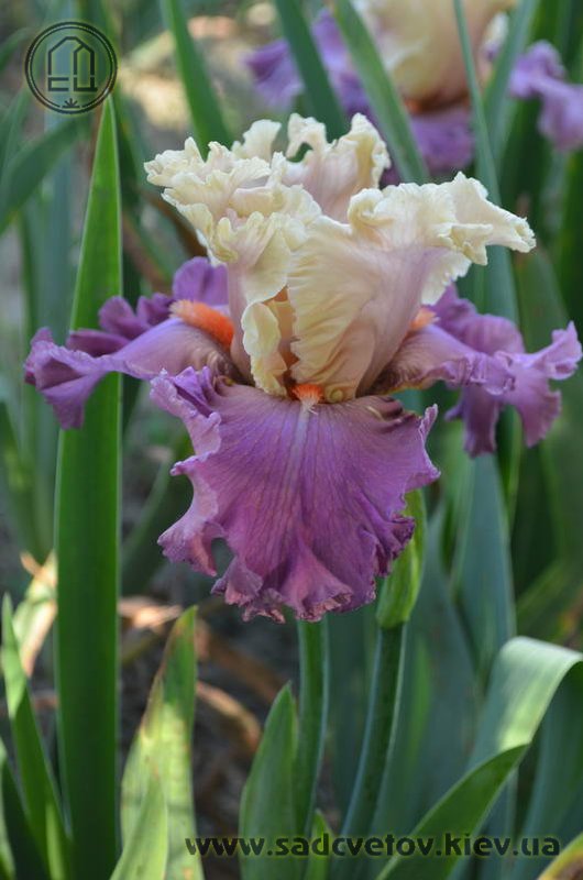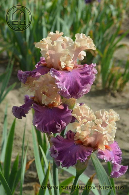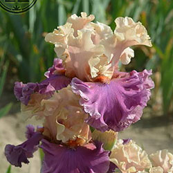 Прекрасно гофрована двоколірна квітка. Ст. - на світлій кремовій основі рум'янець - розгалужене віяло рожевих і лавандових прожилок, ф. - світлі пурпурні злегка висвітлені по краю з маленьким фіолетовим сигналом під приглушеною оранжевою б. лавандовою в основі ворсинок.