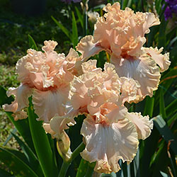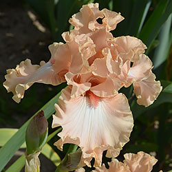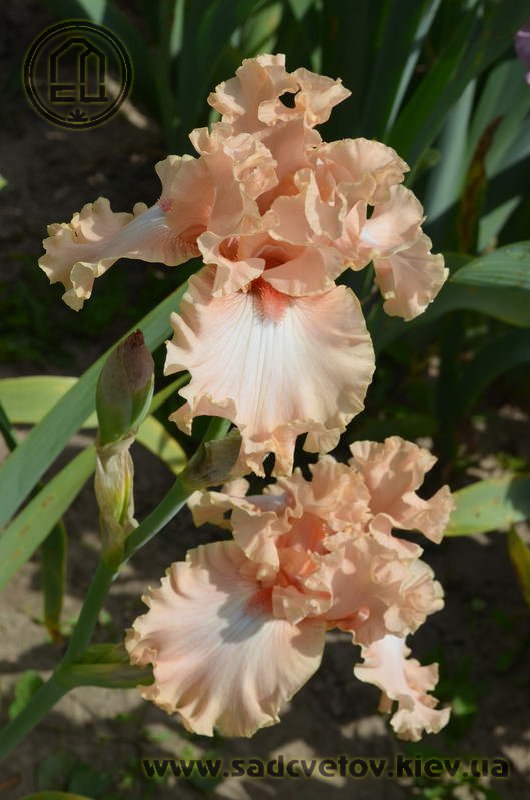 Добре гофрована квітка. Ст. - Світло рожеве з вершково-золотистою дуже гофрованою каймою, серединка з абрикосовими включеннями на кінчиках, ф. - молочна люміната по світлій пурпурно-рожевій основі і вершково-золотава дуже гофрована облямівка, б. - блідий лососєвий зі світлим кінцем