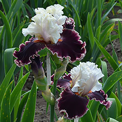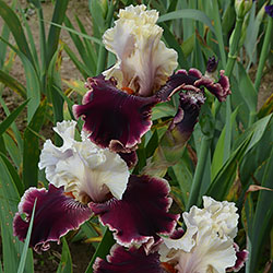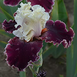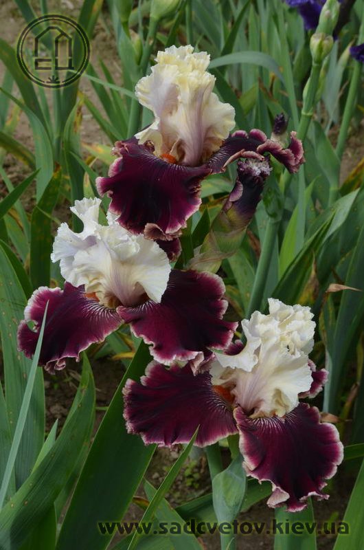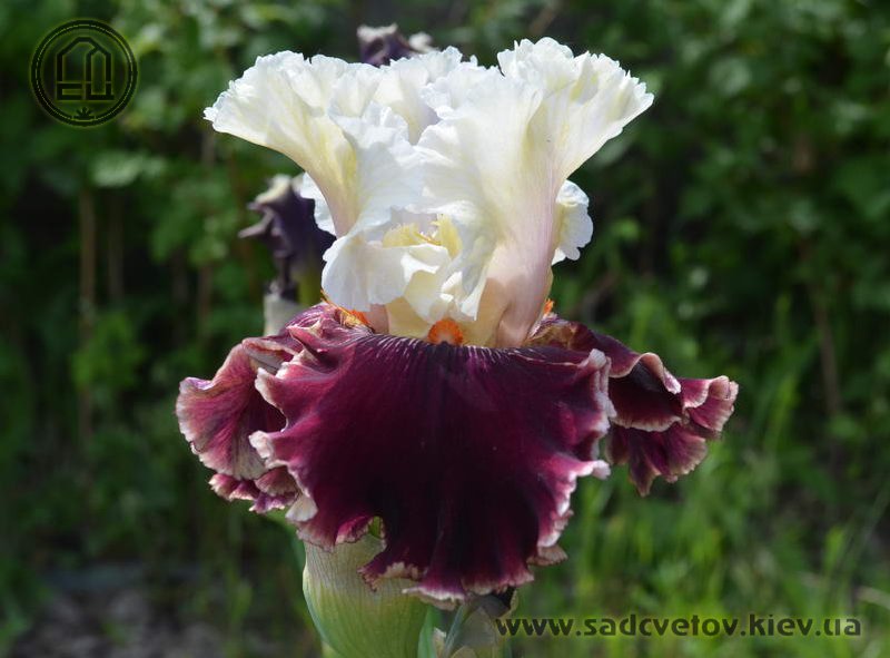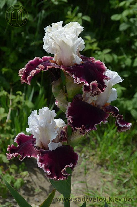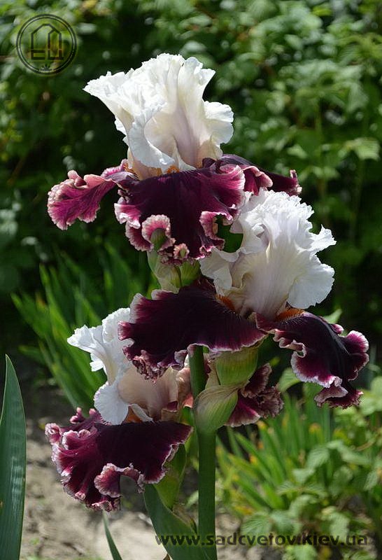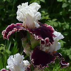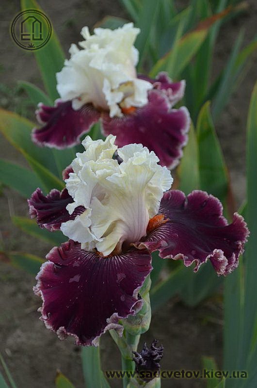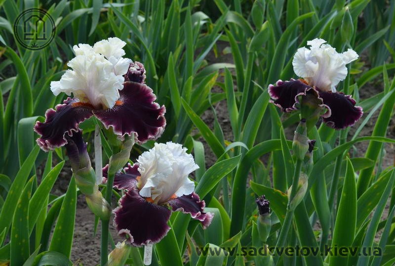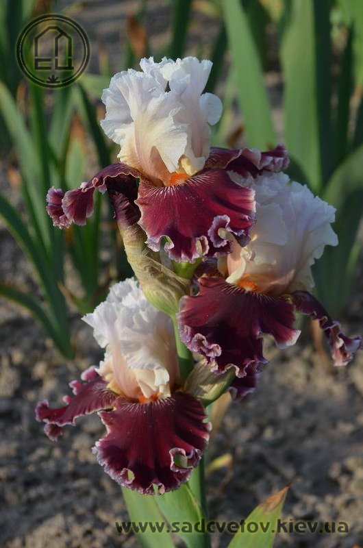 Гофрована квітка. Ст. - сніжно білі з помітним рожево-лавандовим і золотим рум'янцем в середніх жилках від основи, ф. - яскраві вишневі з тонкою білою облямівкою, біля яскравої мандариново-червоною б. білий візерунок з прожилок.