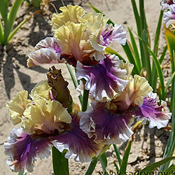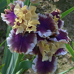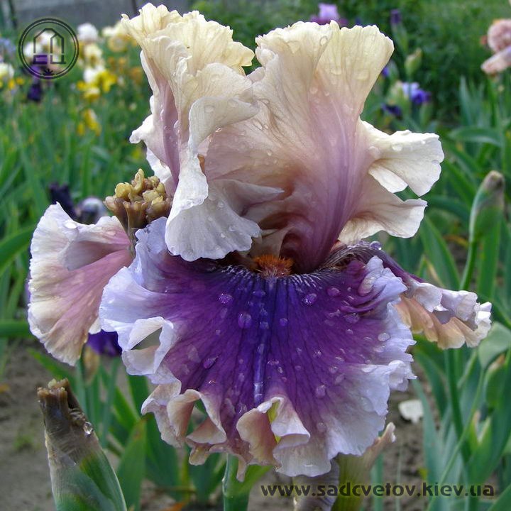 Широка паруюча квітка повна гофр. Світлі устрично-кремові ст. , Ф. з фіолетово-червоним переливом і бузково-кремовою облямівкою. Сильний солодкий аромат!