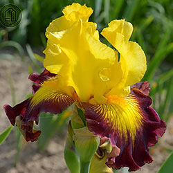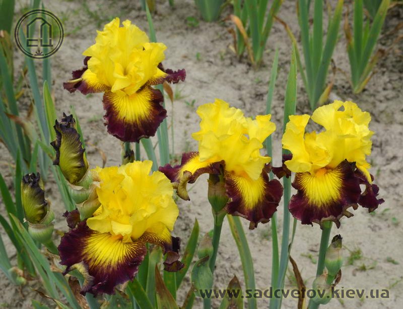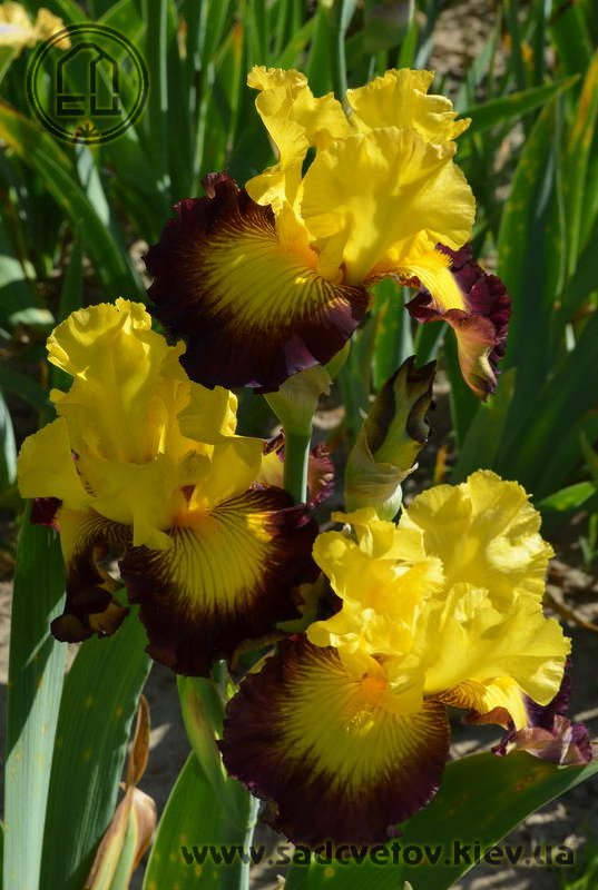 Яскраві золотисто жовті ст. і такий же сонячний візерунок навколо б. на бордових ф.