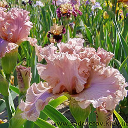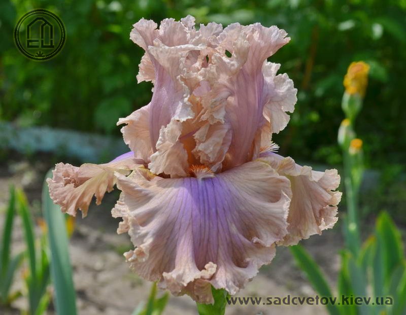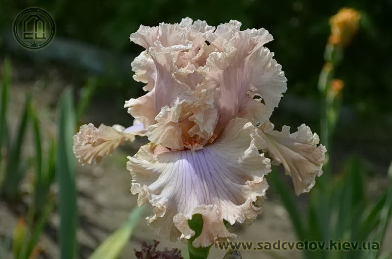 Супергофрований і мереживний рожевий з переливом до кольору шампанського, на ф. синьо-лавандовий сигнал біля яскраво-мандаринової б