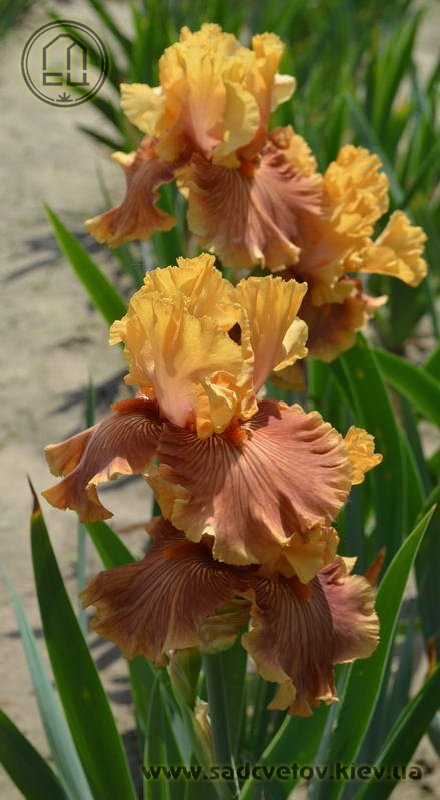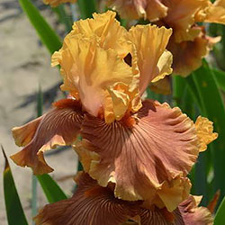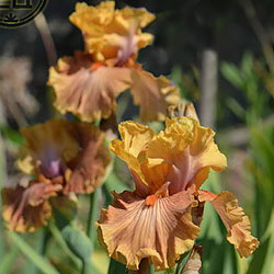 Яскрава гофрована абрикосова квітка. Ст. - світлі оранжево-жовті з лавандовим рум'янцем, ф. - бліді оранжево-жовті в основі у борідки з віялом помірних оранжевих прожилок від борідки по всій поверхні фол за винятком розмитої облямівки кольору стандартів, б. - чистий оранжевий.