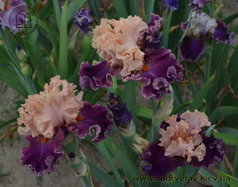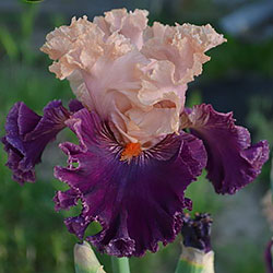 Гофрована, злегка мереживна двоколірна квітка. Блідий абрикосовий в мереживних краях ст. і більш рожевий в середиці. Ф - темні червоно-пурпурні трохи висвітлені до краю з візерунком білих прожилок з боків від чисто червоно-мандаринової б., Фіолетовий сигнал під нею.