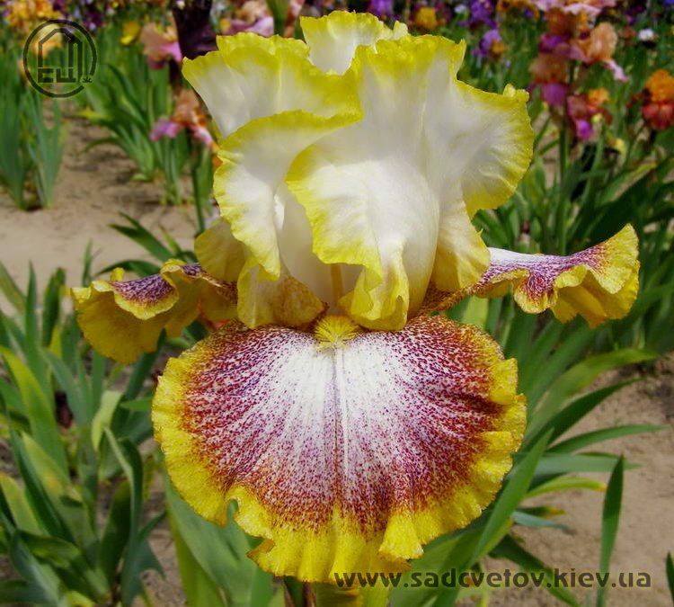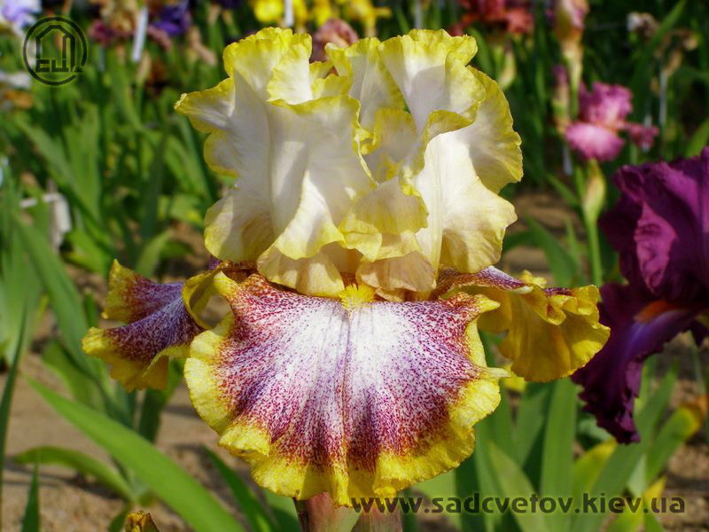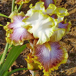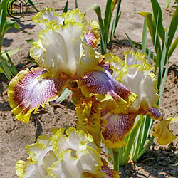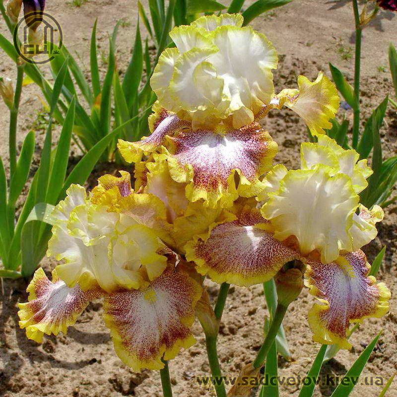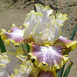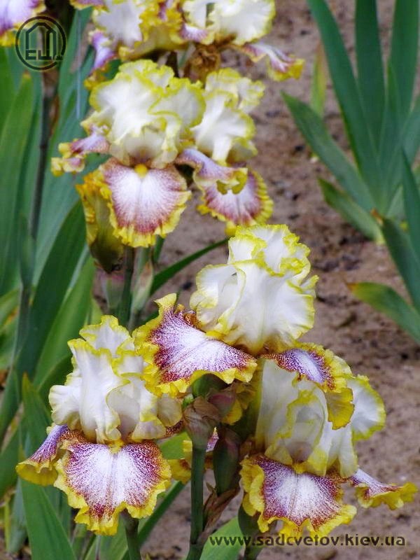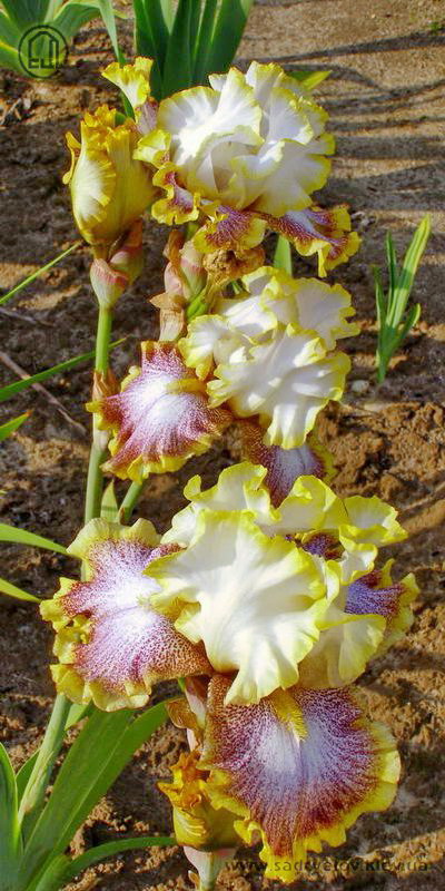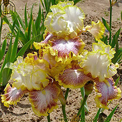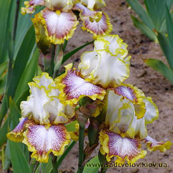 Прекрасна форма та гофрування. Білі ст. із золотистими прожилками, що формують облямівку, ф. - з широкою золотистою облямівкою і бордовими крапками на ній, б. - золотисті.
