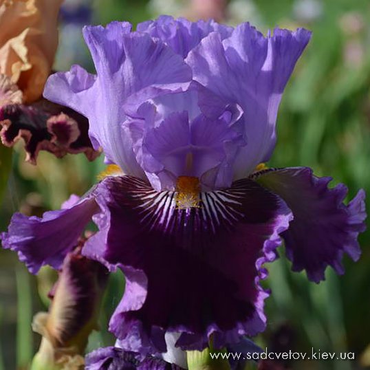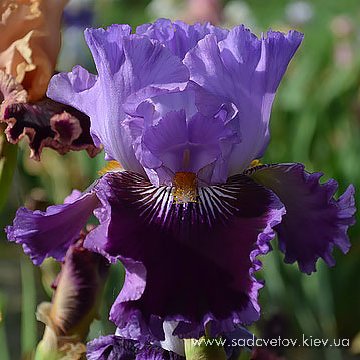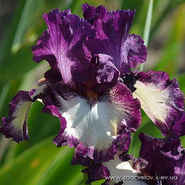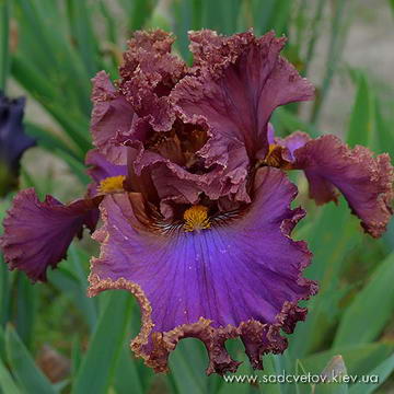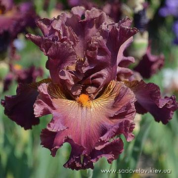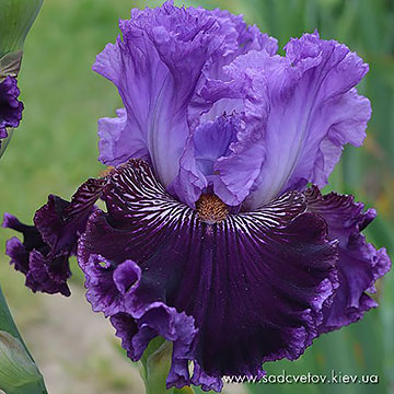 Добре гофрована квітка. Ст. - фіолетові з висвітленням в середині. Гілки маточки такі як стандарти з синім відтінком. Ф. - темні фіолетово-бордові з тонкою каймою кольору стандартів та активним білим візерунком з боків від бороди. Б. - приглушена помаранчево-коричнева по білій основі.