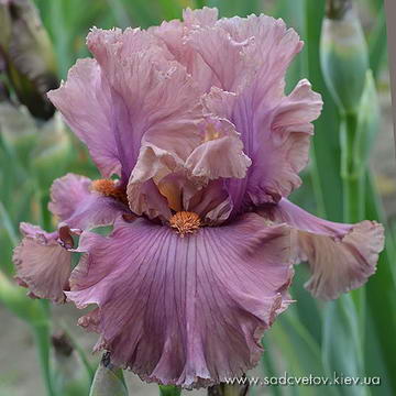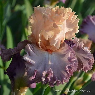 Мереживна, добре гофрована квітка. Ст. - персиково-рожеві, серединка з лавандовими включеннями, ф.- лавандові, більш насичені до низу, рожевий відлив з боків від лососєвої бороди з більш розмитим рожевим кінчиком.