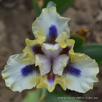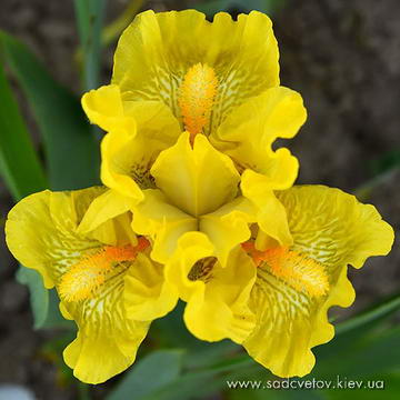Гофрована квітка. Ст. - яскравий зеленувато-жовтий, ф. - такі як стандарти в основі з візерунком чистих зеленувато-жовтих і світлих жовтувато-зелених прожилок навколо б. з кінчиками яскравого оранжево-жовтого по білій основі.
